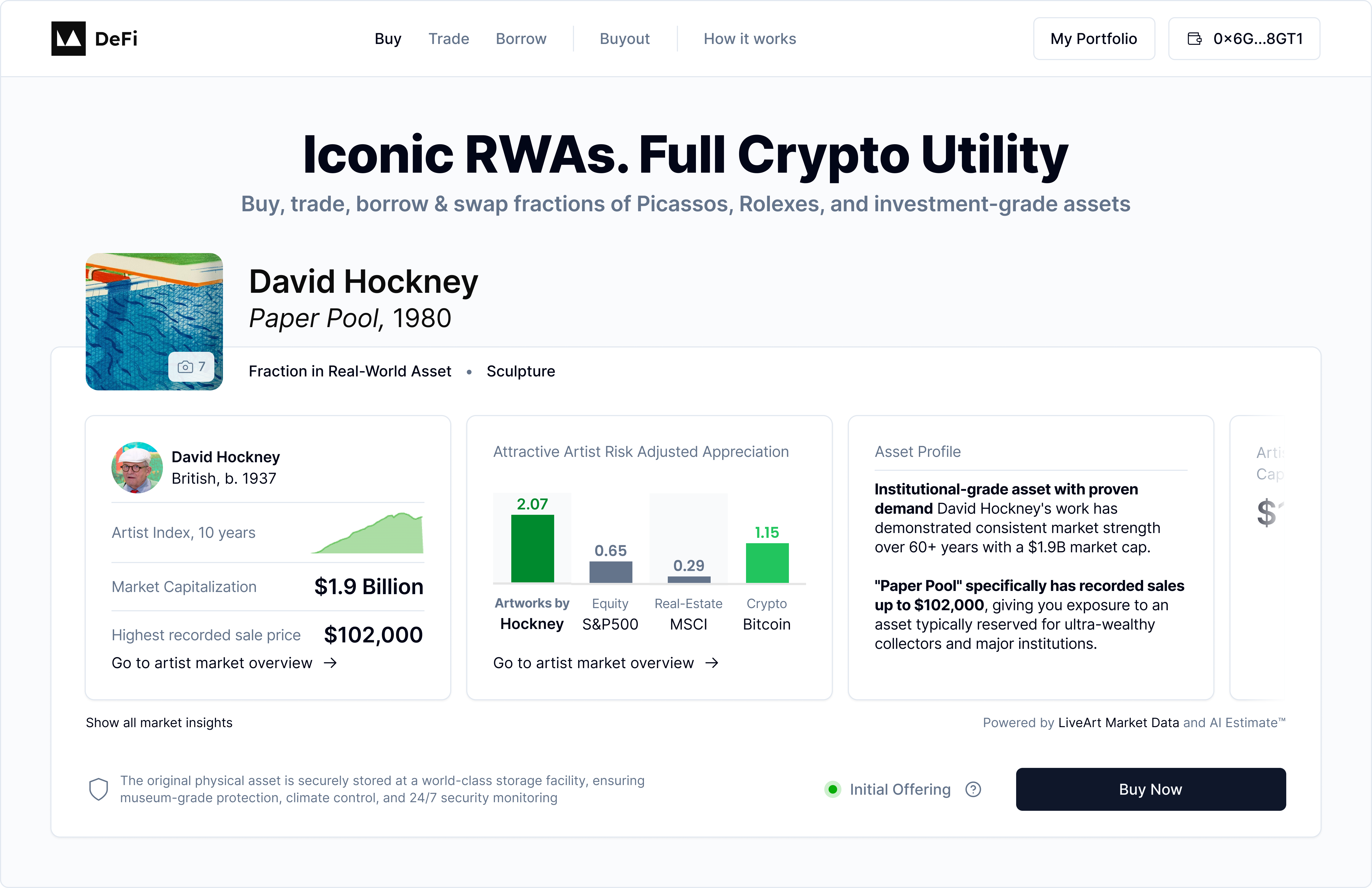 LiveArt transforms investment-grades RWAs including fine art, watches, cars and wine into tradable, fractional tokens onchain.&#x20;